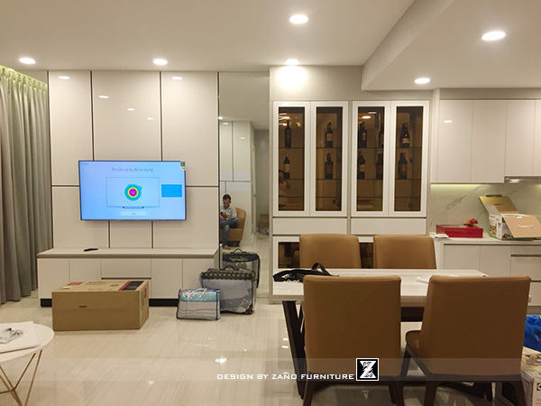 Điểm khác biệt của căn hộ Orchard không nằm ở sự phô trương mà ở cách Zano “giấu” công năng trong từng chi tiết. Tủ âm tường, hệ cửa trượt, ánh sáng gián tiếp và gam màu trung tính giúp không gian gọn gàng nhưng vẫn giữ được sự ấm áp và cá tính.