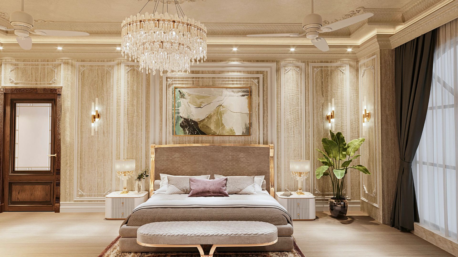 Không phải ở đèn chùm hay phào chỉ.