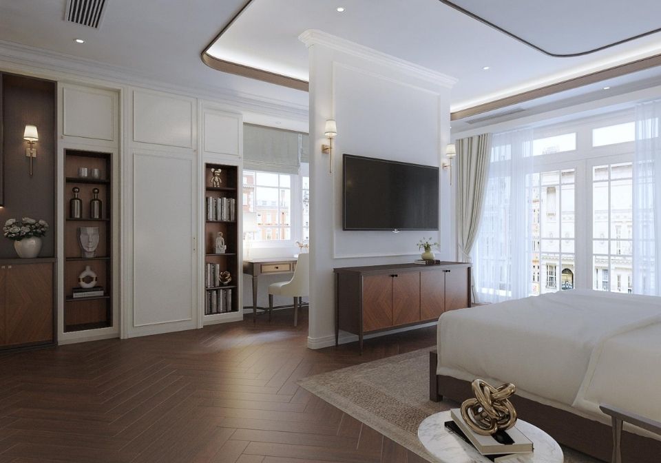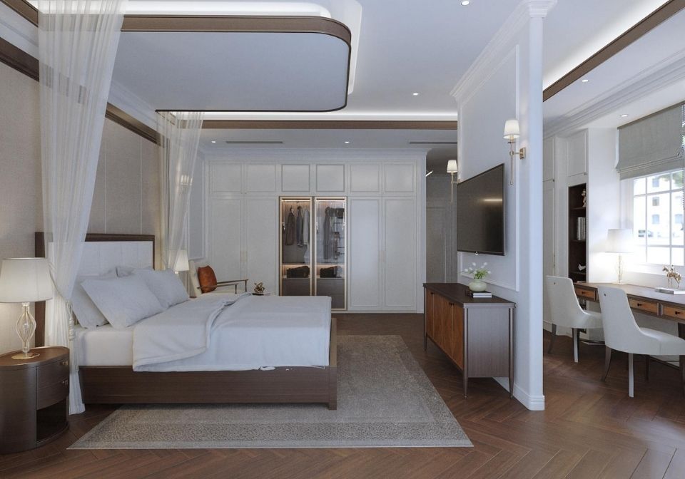 Phòng master bao gồm phòng ngủ, bàn làm việc, walk-in closet và phòng tắm đều mang ngôn ngữ thống nhất. Tất cả được bố trí hài hòa về màu sắc, ánh sáng và công năng, giúc người sở hữu dễ dàng thư giãn và hồi phục năng lượng.