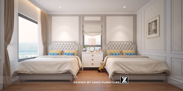 Phòng Ngủ – Riêng Tư & Đầy Tinh Tế: Giường ngủ thiết kế theo phong cách cổ điển, đầu giường bọc da hoặc nệm nhung cao cấp. Tủ quần áo âm tường kết hợp gương lớn, tối ưu không gian. Ban công rộng với rèm cửa mềm mại, mang đến sự thư thái.