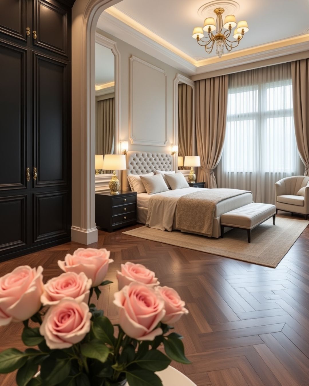 Với màu sắc trầm, hoa hồng nhỏ và bố cục gọn gàng, đây là không gian dành cho người chọn đẹp cho mình, dù không ai nhìn thấy. Đẹp để thư giãn, để tự hài lòng, chứ không phải để chia sẻ.