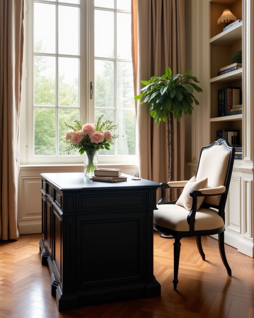 Một chiếc bàn nhỏ, gần ánh sáng, không bị xao nhãng. Góc này thể hiện rõ phong cách làm việc của người thành công: tập trung, đủ yên, và đủ biết mình đang theo đuổi điều gì.