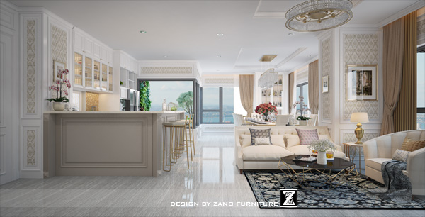 Thiết kế penthouse bán cổ điển là sự hòa quyện giữa nét thanh lịch của kiến trúc cổ điển và sự tiện nghi của phong cách hiện đại. Đặc trưng của phong cách này gồm:✔ Họa tiết tinh xảo nhưng không quá rườm rà; ✔ Sự đối xứng trong bố cục không gian; ✔ Màu sắc trang nhã, thiên về tông trắng, kem, be, xám, kết hợp điểm nhấn ánh kim hoặc gỗ tự nhiên; ✔ Chất liệu cao cấp như đá marble, gỗ tự nhiên, kim loại mạ vàng, pha lê
